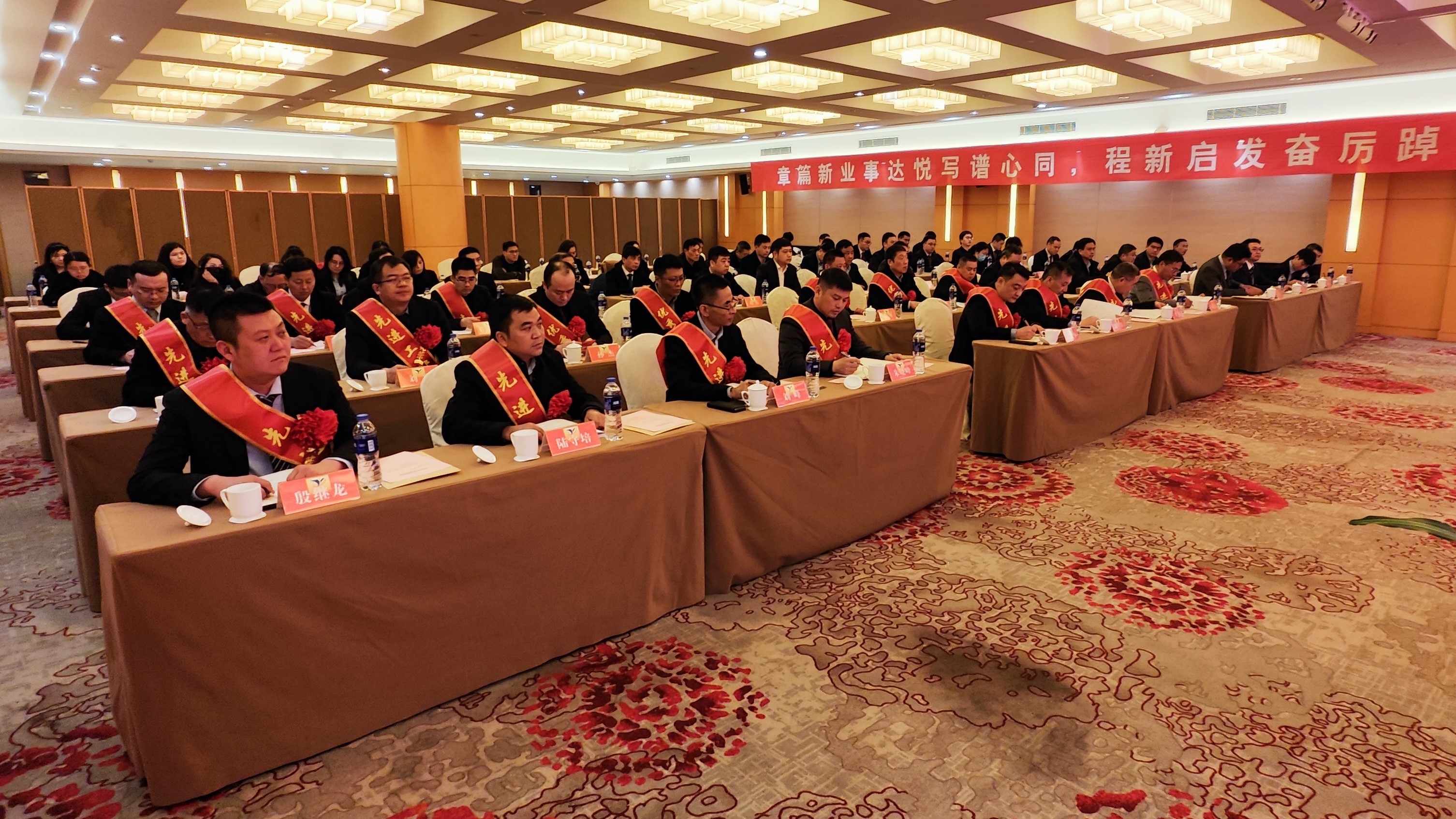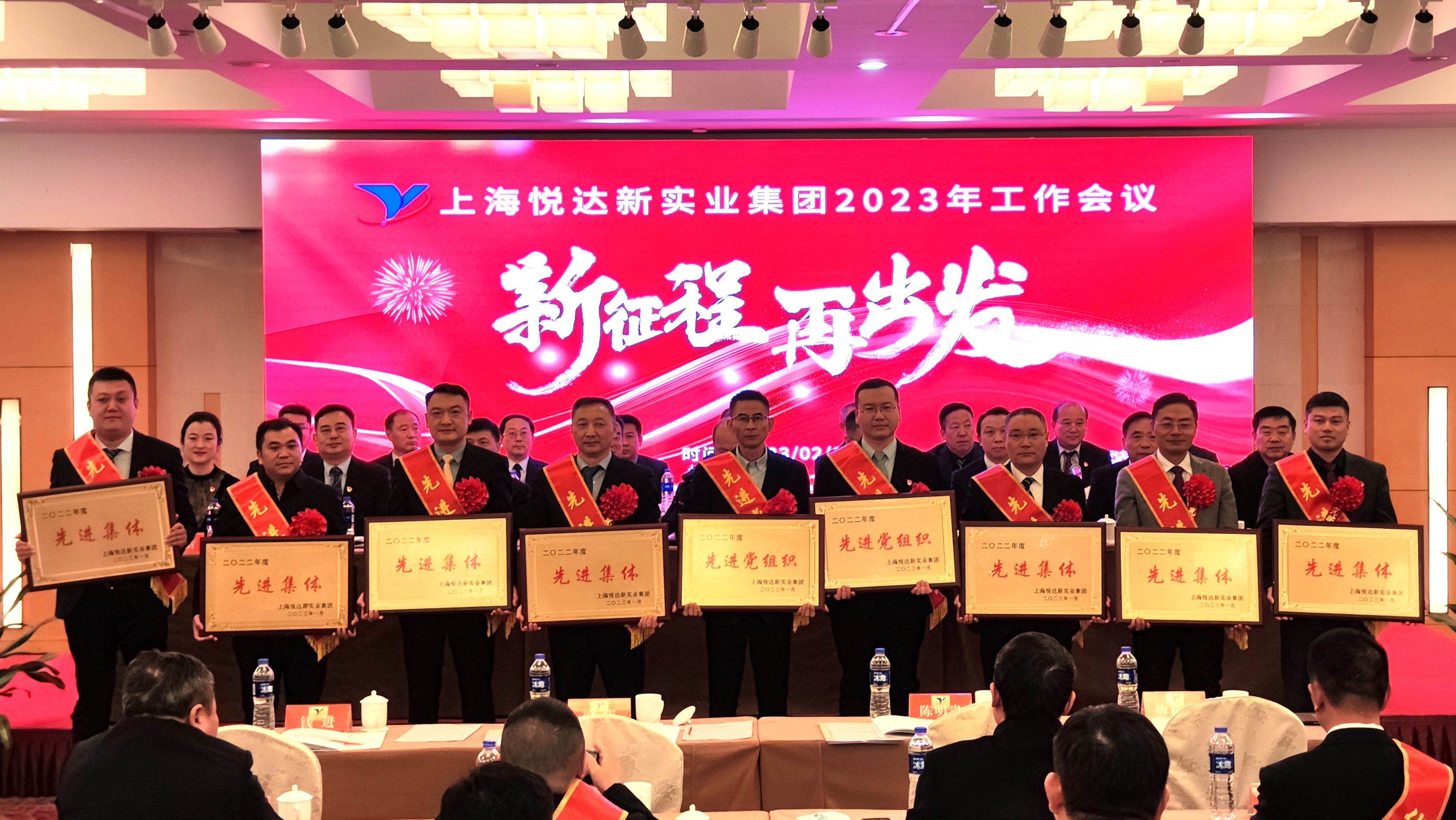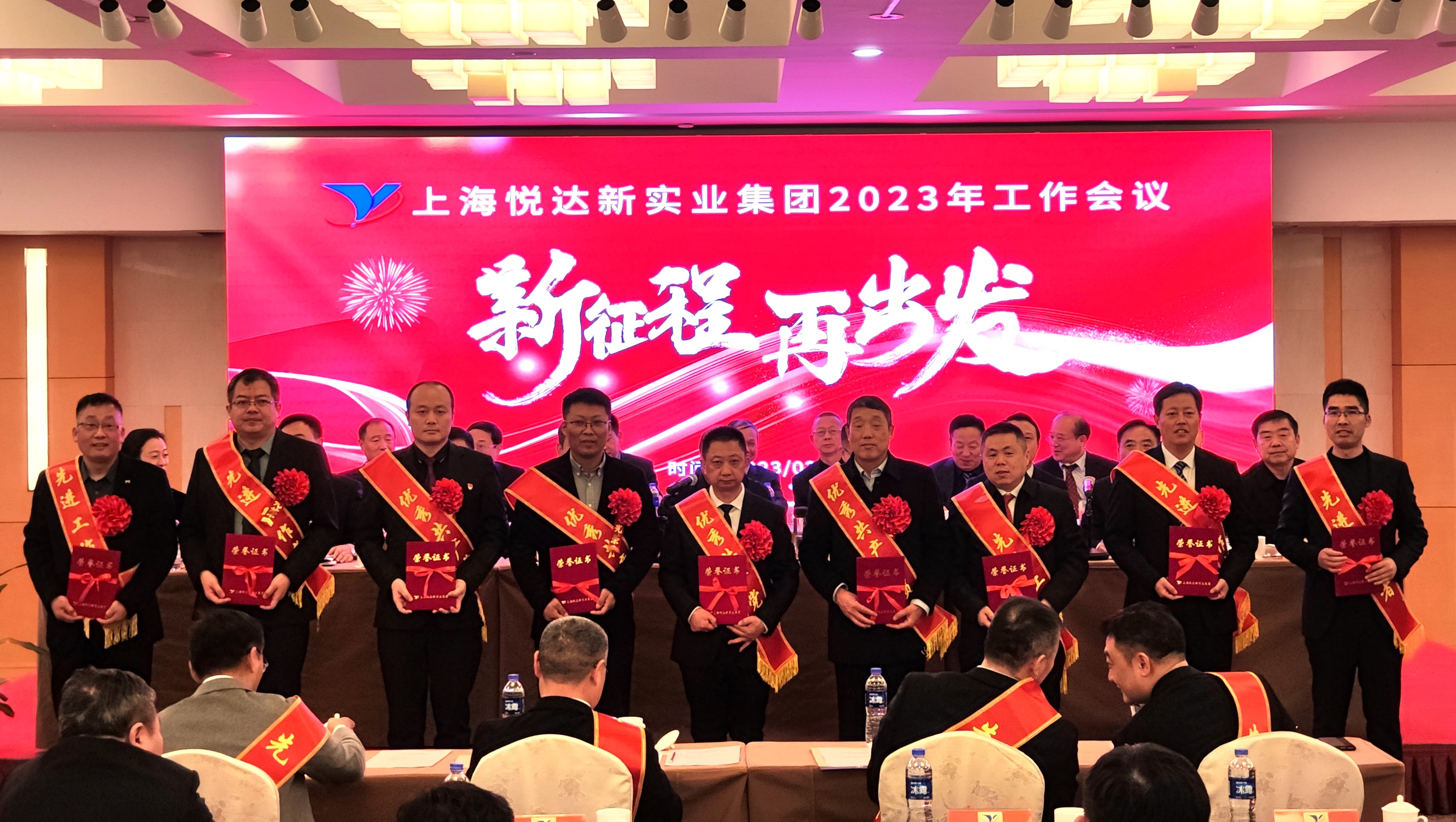 新实业公司领导班子全体成员,全资控股企业班子成员,参股企业委派组成员,受表彰员工代表及机关全体员工参加会议。